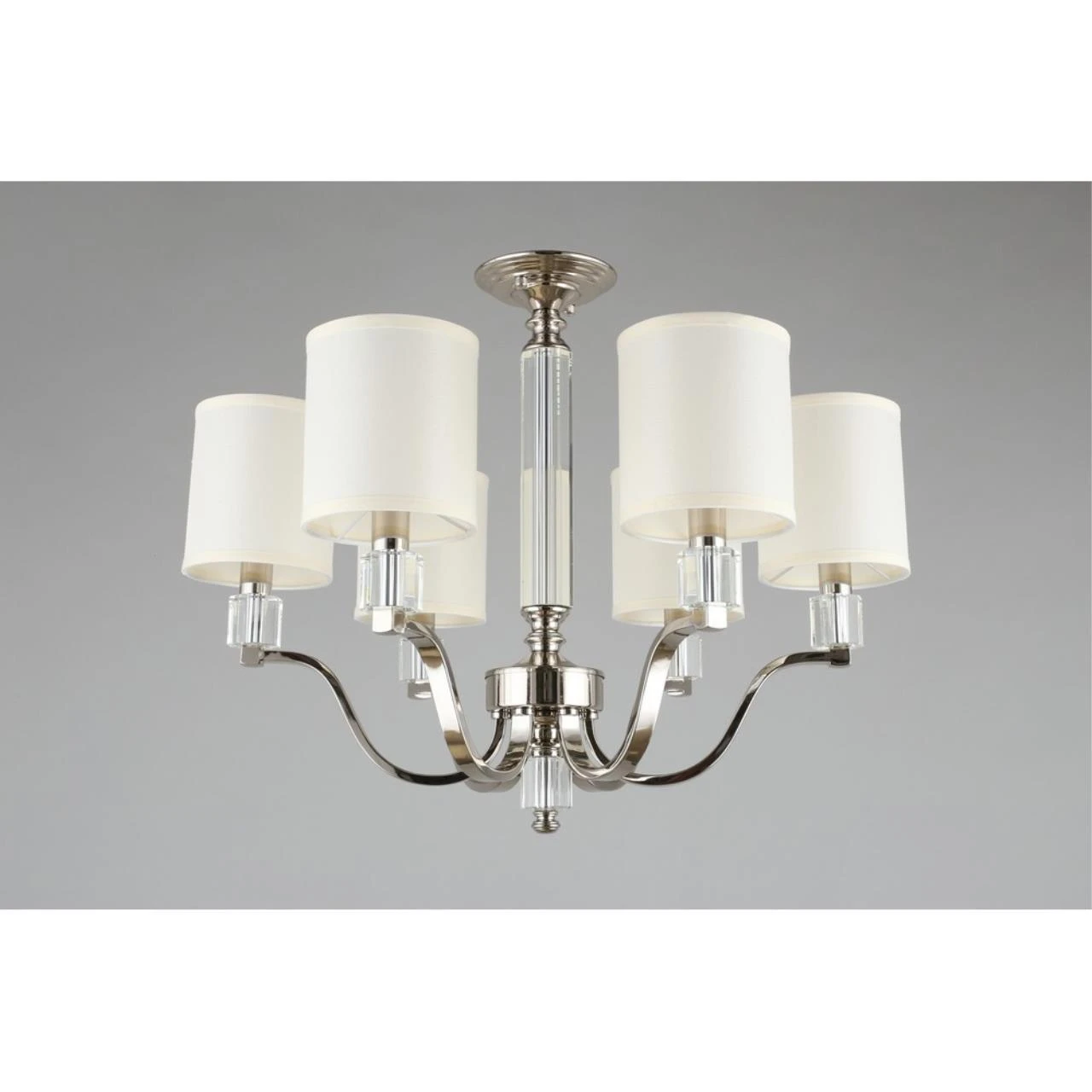 Потолочная люстра Aployt Ivet APL.706.07.06 от Aployt, подходит для гостиной, для спальни, в стиле современный, арт-деко. Материал — металл, цвет хром, плафон из ткань, цвет плафона бежевый, форма плафона — цилиндр. Модель имеет 6 ламп, цоколь E14, мощность 240 Вт. Крепление — крюк. Габариты: высота 560 мм, ширина 690 мм, диаметр 690 мм. Коллекция Ivet.