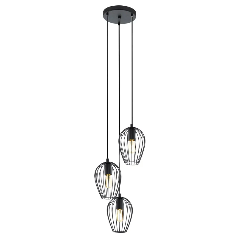 Светильник подвесной Eglo Newtown 49479 от Eglo, подходит для кухни, для прихожей, в стиле лофт. Материал — металл, цвет черный, форма плафона — решетки. Модель имеет 3 лампы, цоколь E27, мощность 180 Вт, площадь освещения до 10 кв. м. Направление света — вниз. Степень защиты IP20. Габариты: высота 1100 мм, ширина 380 мм, диаметр 380 мм. Коллекция Newtown.